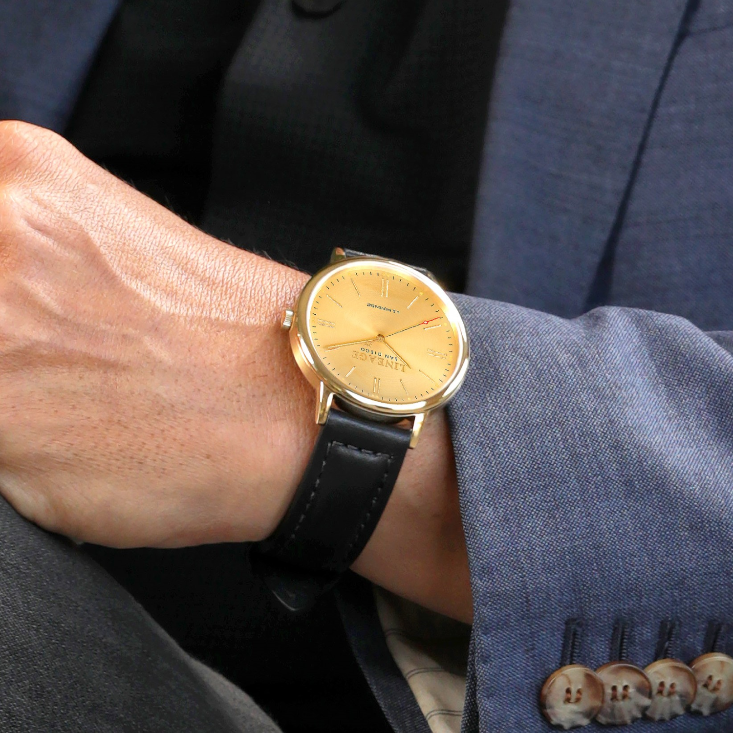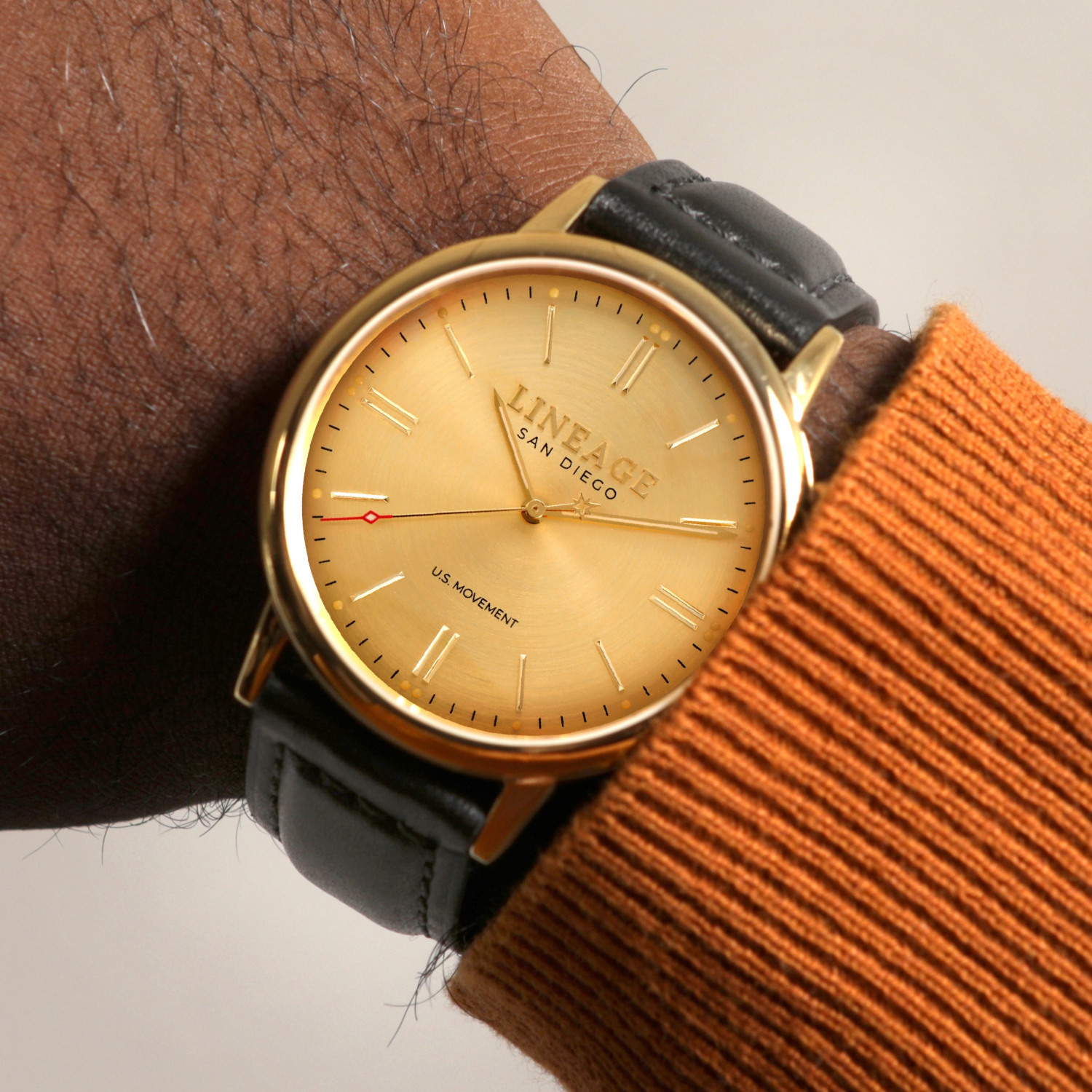 Hand-crafted and stitched in the United States from genuine aniline leather. The smooth finish of this 20mm band and unique stitching, coupled with the custom engraved buckle, makes this our most popular band. The quick release pin allows you to quickly swap this band with others so you can dress up and dress down your timepiece depending on occasion.